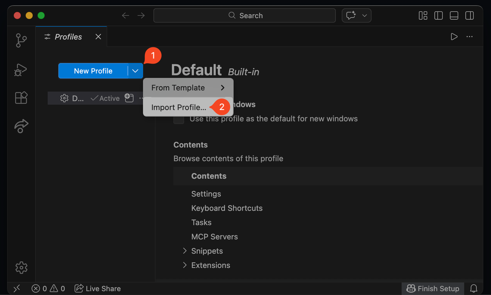 New Profile, clique emImport Profile....