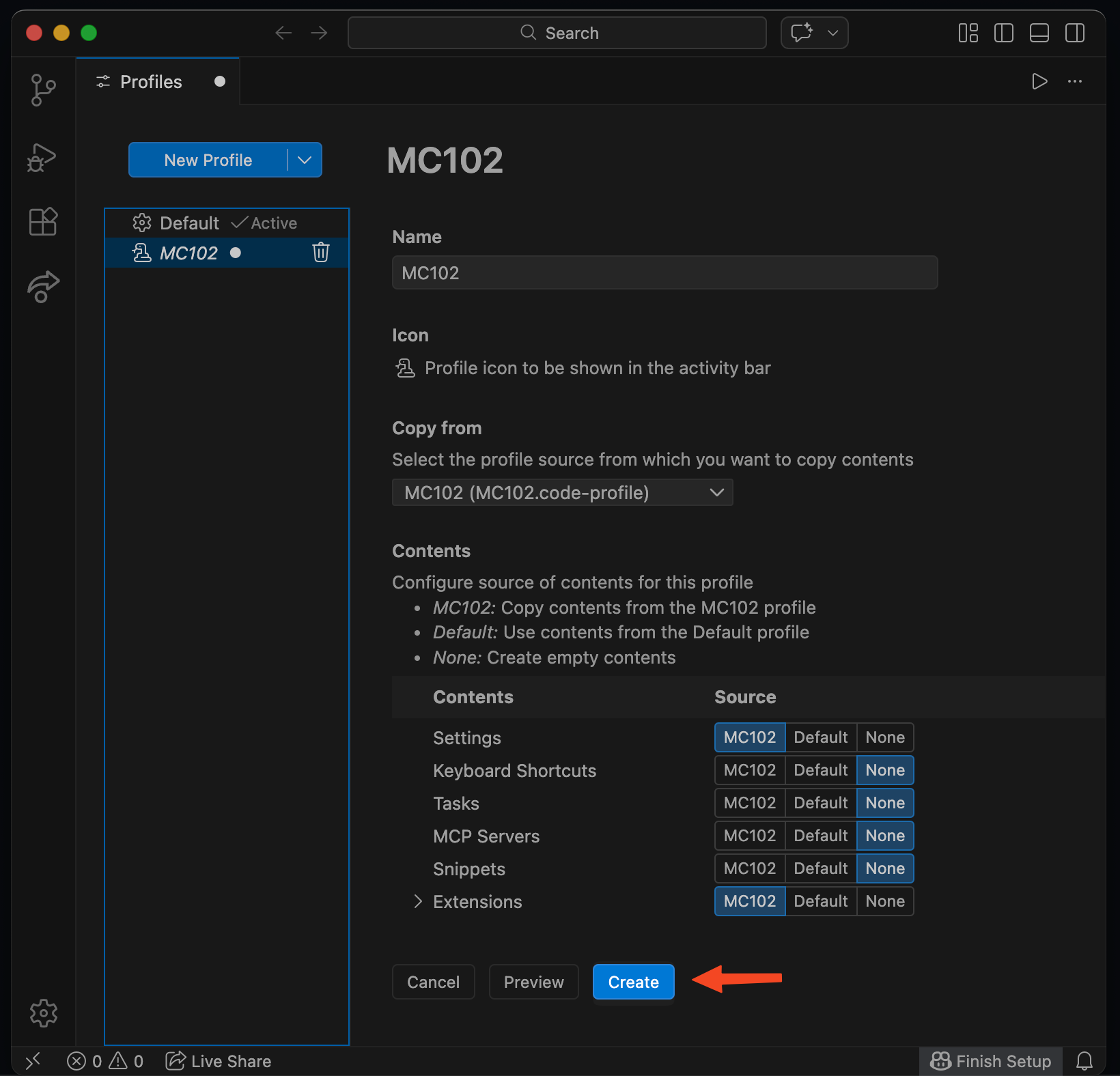 Clique em Create.